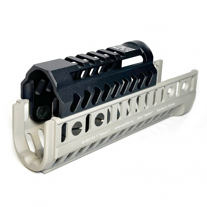 Обе детали комплекта являются цельнофрезерованными, что делает их максимально прочными и надежными. Материал изготовления алюминиевый сплав Д16Т. Специальное покрытие защищает цевье от влаги.