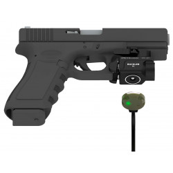 Фонарь крепится на стандартную планку Picatinny, а в комплекте поставляются адаптеры для Glock и других моделей пистолетов. Подвижная база крепления позволяет настроить индивидуальный вынос для удобного использования. Быстросъёмное крепление обеспечивает легкость установки и снятия.