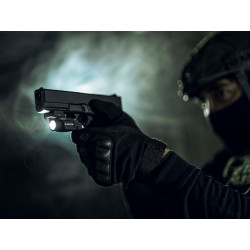 Корпус фонаря выполнен из авиационного алюминия 6061-T6, что обеспечивает его легкость и долговечность. Премиальное анодирование III типа защищает поверхность от бликов и износа. Фонарь выдерживает отдачу любого пистолетного калибра, что делает его надежным выбором для профессионального использования.