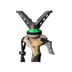 Упор опоры имеет V-образную форму и вращается на 360 градусов, что предоставляет свободу прицеливания. Благодаря этому стрелок может быстро менять угол стрельбы без необходимости перемещения опоры. Мягкое ребристое покрытие упора защищает оружие от царапин и обеспечивает бесшумность при использовании.