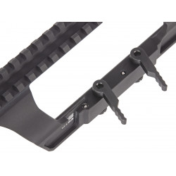 Кронштейн оснащен планкой Picatinny с 20 слотами и общей длиной 205 мм. Это обеспечивает совместимость с большинством оптических и тактических аксессуаров. Конструкция позволяет использовать штатные прицельные приспособления без необходимости снятия кронштейна.