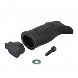 Корпус рукоятки изготовлен из прочного и легкого армированного полимера, который покрыт прорезиненным материалом. Это улучшает сцепление с рукой, предотвращает скольжение и обеспечивает комфорт даже при использовании в перчатках или в условиях высокой влажности.