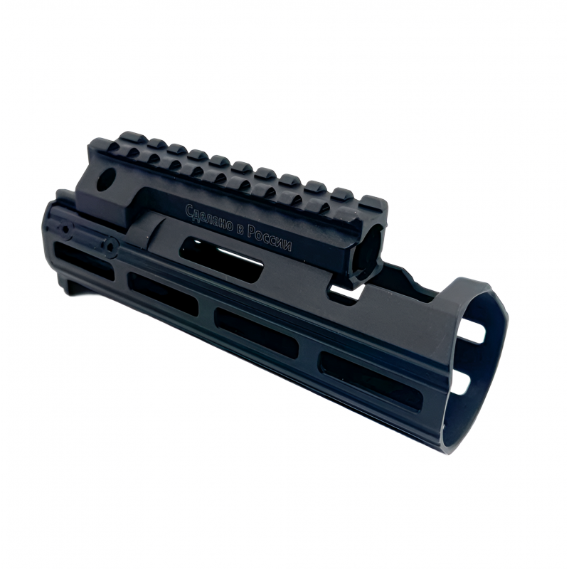 Цевье выполнено из алюминиевого сплава Д16Т с анодированным покрытием, что обеспечивает высокую прочность и устойчивость к коррозии. При этом вес комплекта составляет всего 278 грамм, что минимизирует нагрузку на оружие и сохраняет его маневренность.