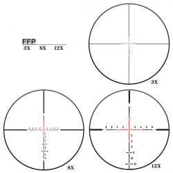 Прицельная сетка SLT IR-MIL расположена в первой фокальной плоскости, что позволяет масштабировать сетку вместе с изображением. Это дает возможность сохранять точность баллистических расчетов при изменении кратности, что делает прицел удобным для стрельбы на разных дистанциях.
