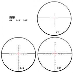 Прицельная сетка масштабируется вместе с изменением кратности, что делает ввод поправок максимально точным. Это особенно полезно для баллистической корректировки при стрельбе на дальние расстояния.