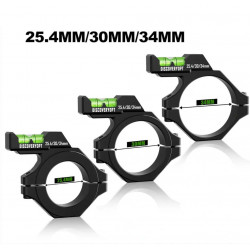 Уровень совместим с трубками диаметром 25,4 мм, 30 мм и 34 мм, что делает его универсальным решением для большинства оптических прицелов. Это значит, что вам не придется искать разные модели для разных типов оружия — один уровень подходит для всего вашего арсенала.