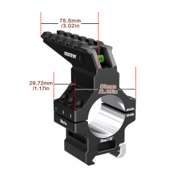 Диаметр крепления составляет 30 мм, что подходит для большинства современных оптических прицелов. Это обеспечивает совместимость с различными моделями, упрощая выбор и установку.