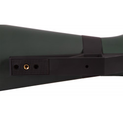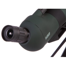 Окуляр зрительной трубы расположен под углом, что облегчает длительные наблюдения. Большой вынос выходного зрачка (21–15 мм) позволяет комфортно использовать прибор даже тем, кто носит очки. Резиновый наглазник дополнительно повышает удобство в процессе наблюдения.