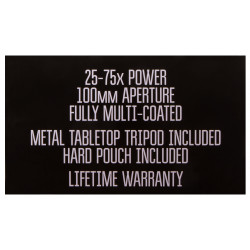 Для стабильности во время наблюдений зрительная труба оснащена стандартным резьбовым креплением 1/4 дюйма и поставляется с металлическим настольным штативом. В комплект также входит жесткий кейс, который обеспечивает удобство хранения и переноски, защищая прибор от повреждений.