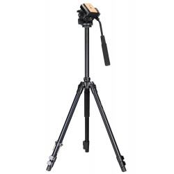 Штатив изготовлен из алюминия, что обеспечивает его прочность и долговечность, при этом сохраняя легкость конструкции. Это делает его удобным для транспортировки и использования в различных условиях.