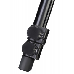 Высоту штатива можно легко настроить двумя способами: с помощью флип-замков для ножек или поднятием центральной штанги. Диапазон высоты в рабочем положении составляет от 300 до 1560 мм, что позволяет адаптировать штатив под любые задачи. Для точной установки предусмотрен встроенный пузырьковый уровень, который помогает выровнять штатив по горизонту.