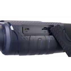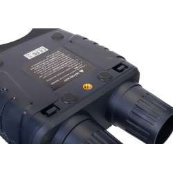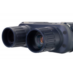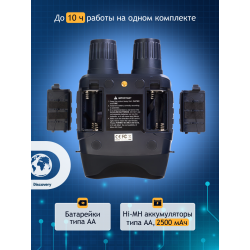 Прибор имеет удобный корпус, который хорошо лежит в руках, а кнопки управления расположены под пальцами для быстрого доступа. Влагозащита по стандарту IP54 позволяет использовать бинокль в сложных полевых условиях. Работает устройство от шести батареек типа AA или аккумуляторов, обеспечивая до 10 часов автономной работы.