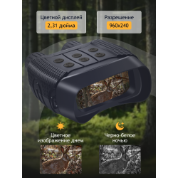 Бинокль оснащен цифровым преобразователем, который позволяет использовать его как ночью, так и днем. Это делает прибор универсальным, заменяя классический полевой бинокль. Днем устройство обеспечивает четкое изображение объектов начиная с 3 метров, а ночью — до 250 метров, что особенно полезно для различных задач, требующих точного наблюдения.