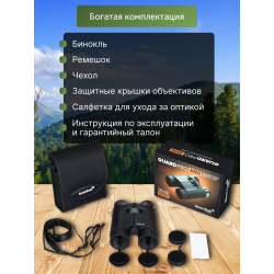 Levenhuk Guard PRO 3000 оснащен функцией установки на штатив, что особенно полезно для стационарных наблюдений. В комплект входят защитные крышки объективов, чехол, ремешок и салфетка для ухода за оптикой, обеспечивая удобство транспортировки и хранения.