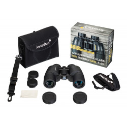 В комплект входят крышки для окуляров и объективов, ремешок, чехол, салфетка для очистки оптики и инструкция по эксплуатации. Это делает использование бинокля максимально удобным и практичным.