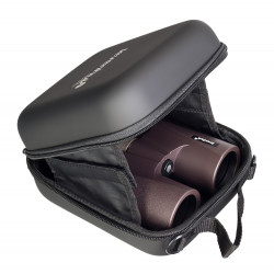 Оптическая схема с roof-призмами позволила создать компактный и эргономичный корпус, который удобно держать в руках. Поворотно-выдвижные наглазники с тремя позициями фиксации обеспечивают комфортное использование, а изменяемое межзрачковое расстояние подходит для пользователей с разными особенностями зрения.