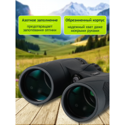 Бинокль имеет герметичный корпус с уровнем защиты IP67, что гарантирует полную защиту от пыли, дождя, снега и временного погружения в воду на глубину до 1 метра. Это делает его незаменимым для использования в любых погодных условиях, включая экстремальные.