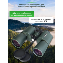 Бинокль оснащен призмами Porro и линзами из бариевого крона BaK-4 с многослойным просветлением. Такая конструкция обеспечивает высокую детализацию изображения, насыщенные цвета и минимальные оптические искажения. Это делает его идеальным для наблюдений в сумерках или при слабом освещении.