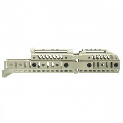 Создан для установки на место штатного цевья. Подходит на АК и карабины на его основе. Имеет направляющую Базис для установки совместимых с ней аксессуаров на цевьё.