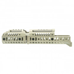 Создан для установки на место штатного цевья. Подходит на АК и карабины на его основе. Имеет направляющую Базис для установки совместимых с ней аксессуаров на цевьё.