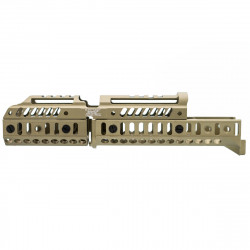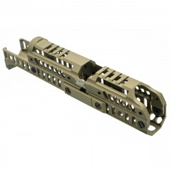 Создан для установки на место штатного цевья. Подходит на АК и карабины на его основе. Имеет направляющую Базис для установки совместимых с ней аксессуаров на цевьё.