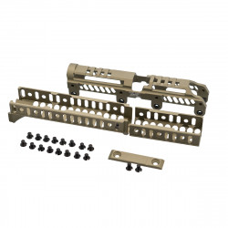 Создан для установки на место штатного цевья. Подходит на АК и карабины на его основе. Имеет направляющую Базис для установки совместимых с ней аксессуаров на цевьё.