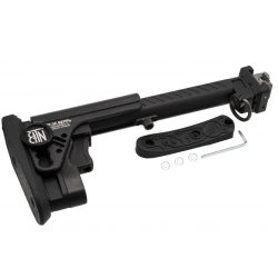 Механизм складывания позволяет складывать приклад вдоль ствольной коробки и фиксировать его в любом положении телескопа и высоты щеки.