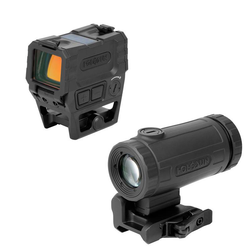 Комплект, которое сочетает компактный коллиматор Holosun AEMS Pro X2 RD с продвинутой электроникой и легкий откидной увеличитель HM3XT. Быстрый захват цели на близкой дистанции и точная стрельба на дальних - одним движением переводите систему из режима 1× в 3× без потери удобства и баланса оружия.