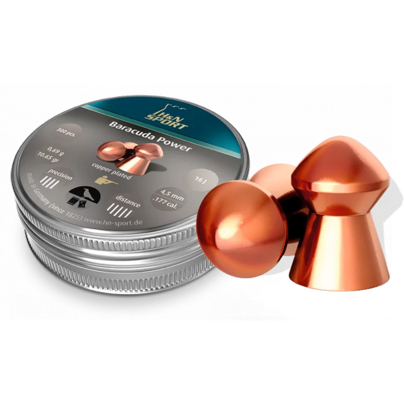 Пули H&N Baracuda Power 4.5 мм предназначены для использования в пневматическом оружии. Они идеально подходят для стрельбы на дальние дистанции благодаря своей высокой точности, аэродинамическому дизайну и медному покрытию, которое исключает контакт со свинцом.