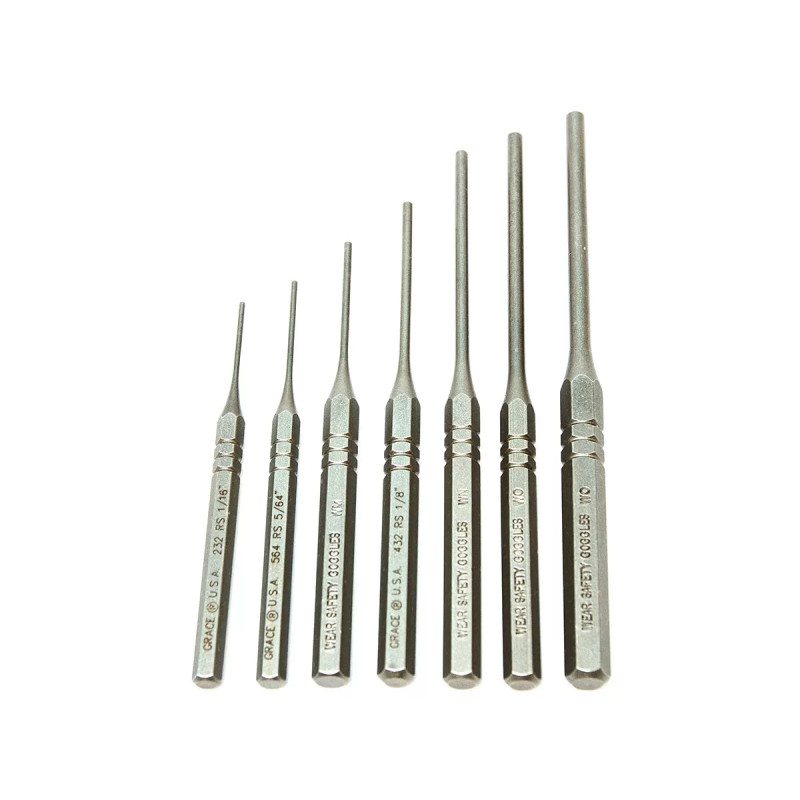 Выколотки Grace USA изготовлены из высокоуглеродистой стали Molybendenum Tool, которая отличается исключительной прочностью и устойчивостью к износу. Этот материал обеспечивает надежность при выполнении даже самых сложных задач, связанных с извлечением штифтов, что делает набор идеальным выбором для профессионалов и любителей оружейного дела.