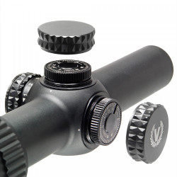 Veber Wolf оснащен низкими закрытыми барабанчиками выверки с шагом 1/4 MOA. Такая конструкция позволяет точно и быстро настраивать прицел, исключая случайное сбивание настроек во время охоты.