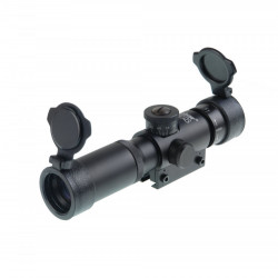 Прицел оснащен сеткой SKS с дальномерной шкалой 1,7/100 м, что позволяет быстро и точно оценивать расстояние до цели. Это особенно полезно для охотников и стрелков, которым важно учитывать дистанцию для корректировки выстрела.