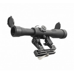 Прицел оснащен боковым креплением типа «ласточкин хвост», обеспечивающим надежную фиксацию. Пристрелочные винты позволяют точно настроить прицел с шагом выверки 50 мм/100 м, а функция сброса на «ноль» облегчает повторную настройку.