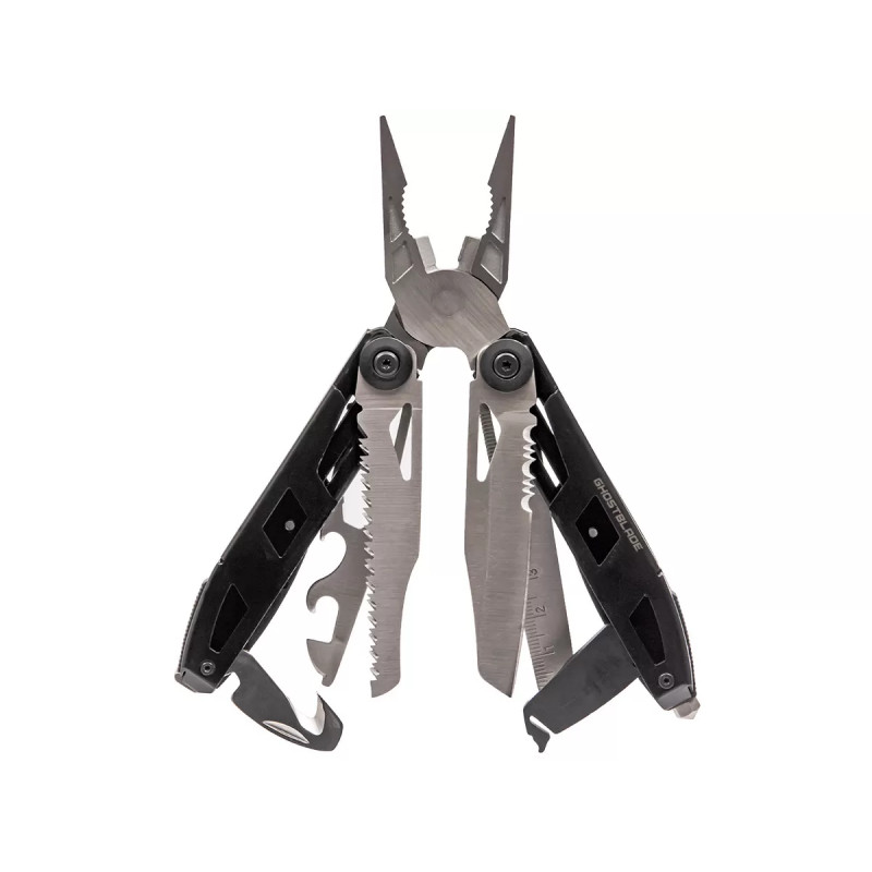 Мультитул включает 12 инструментов, среди которых плоскогубцы, кусачки, нож с частичной серрейторной заточкой, пила, напильник, линейка, стеклобой, стропорез, держатель для бит и универсальный инструмент. Универсальный инструмент выполняет функции открывалки, гаечного ключа, зачистки проводов и отвертки. Это делает GhostBlade M-103 идеальным решением для выполнения множества задач.