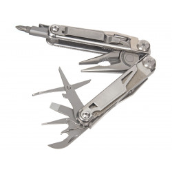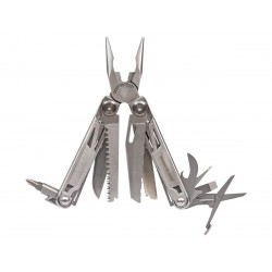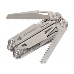Каждый инструмент мультитула оснащён надёжной блокировкой, предотвращающей случайное закрытие во время работы. Нож и серрейторный клинок можно открыть одной рукой, что особенно удобно в полевых условиях. Пружинный механизм на ножницах упрощает их использование, а пила с двухрядными зубьями позволяет легко справляться с ветками или небольшими деревьями.