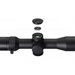 Прицел оснащён барабанчиками с низким профилем, обеспечивающими точные и чёткие клики при вводе поправок с шагом 0,1 MIL. Подсветка центрального перекрестия имеет 6 уровней яркости, что позволяет адаптироваться к различным условиям освещения. Работа подсветки обеспечивается батарейкой CR2032.
