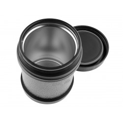 Термос выполнен в темно-сером цвете с молотковым покрытием, что придает ему стильный и современный вид. Его высота всего 130 мм, а вес 280 г, что делает его удобным для транспортировки и хранения даже в небольшой сумке.