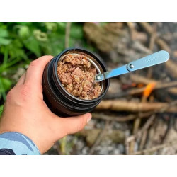 Широкое горлышко диаметром 80 мм позволяет легко наполнять термос как первыми, так и вторыми блюдами. Оно также упрощает процесс мытья, обеспечивая доступ ко всем внутренним поверхностям. Противоскользящее дно добавляет устойчивости, предотвращая случайное скольжение.