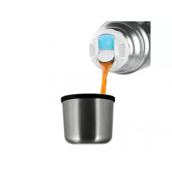 Пробка клапанного типа позволяет наливать напиток, не откручивая крышку полностью. Это удобно и помогает сохранить температуру содержимого. Кроме того, крышка термоса может использоваться как чашка, что особенно практично в дороге.