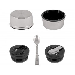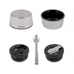 В комплекте с термосом идёт крышка, которая выполняет функцию чашки, а также складная ложка из нержавеющей стали. Это позволяет полноценно обедать в любых условиях, не прибегая к дополнительной посуде. Ложка компактно складывается и надёжно фиксируется, что делает её удобной для транспортировки.