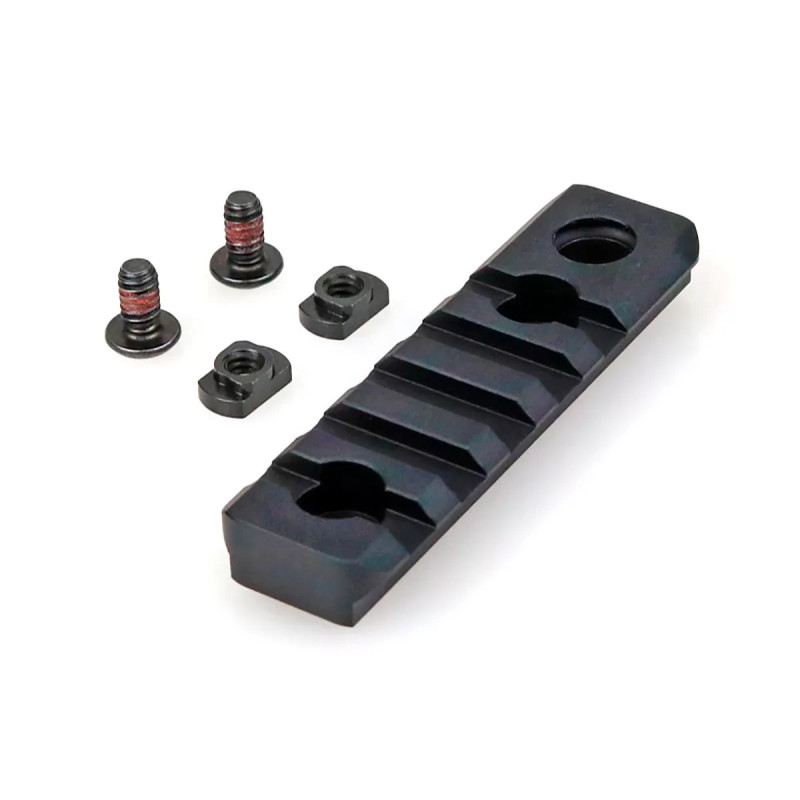 Планка предназначена для установки на оружие с интерфейсом M-LOK, что делает ее универсальной и подходящей для большинства современных моделей. В комплект входят два винта и две закладные, что упрощает процесс установки и гарантирует надежное крепление.
