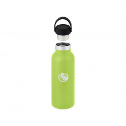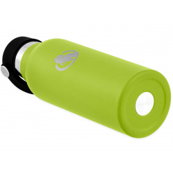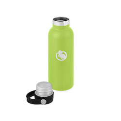 Зелёный цвет корпуса и минималистичный дизайн делают термобутылку стильным аксессуаром. Резиновый подвес позволяет подвесить её на одежду, рюкзак или сумку, что особенно удобно в поездках или на прогулках.