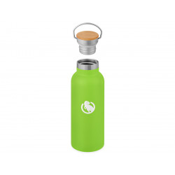 Корпус и колба изготовлены из нержавеющей стали, что делает термобутылку устойчивой к повреждениям и безопасной для здоровья. Использование бамбука в крышке подчёркивает экологичность изделия.