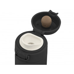 Термокружка оснащена узким поильником, который предотвращает расплескивание напитков во время движения. При питье крышка фиксируется в открытом положении, обеспечивая комфортное использование.