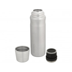 Корпус, колба и крышка-чашка термоса изготовлены из высококачественной пищевой нержавеющей стали марки 304SS. Этот материал отличается долговечностью, устойчивостью к повреждениям и коррозии, что делает термос надежным даже в экстремальных условиях. Матовая полировка корпуса не только придает изделию стильный вид, но и защищает от царапин.