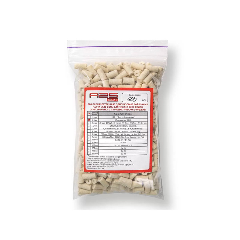 Идеальная форма и точный диаметр: Каждый патч имеет строго заданный диаметр 6,0 мм, что обеспечивает равномерное усилие при чистке ствола. Благодаря этому, процесс чистки становится более эффективным и безопасным для оружия.