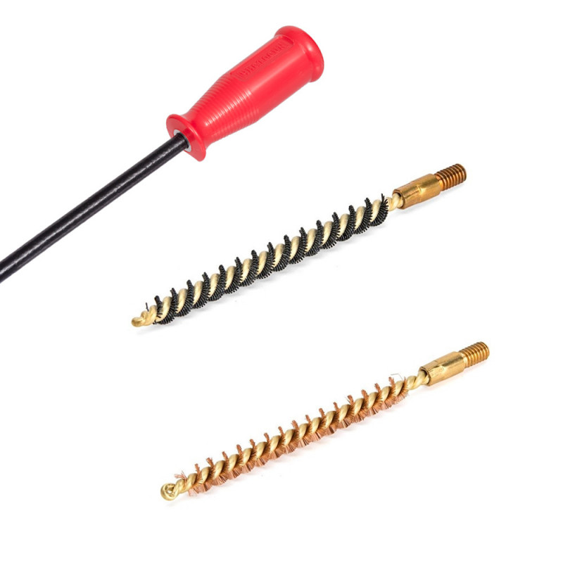 Два щетинных ёршика: В комплекте два ёршика калибра с резьбой 8/32 (папа): нейлоновый и бронзовый. Нейлоновый удобен для деликатной чистки и работы с составами, а бронзовый - для более интенсивного снятия нагара и стойких загрязнений.
