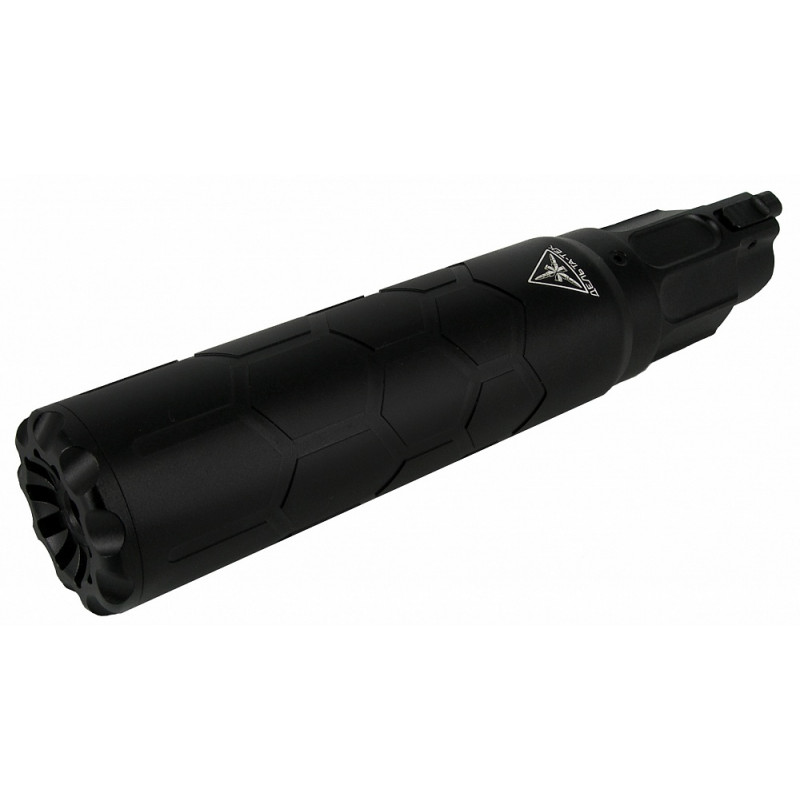 С длиной 208 мм и диаметром 44 мм глушитель сохраняет баланс оружия, не создавая избыточной нагрузки. Его масса в 630 г дополнительно способствует удобству использования, не утяжеляя автомат.