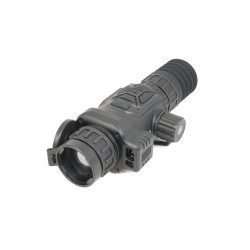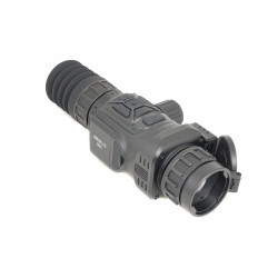 Прицел оснащён матрицей с разрешением 640x512 пикселей и оптикой с диаметром объектива 35 мм и относительным отверстием F1.0. Это позволяет создавать чёткое и детализированное изображение даже при низком термоконтрасте, например, в условиях тумана или сырой погоды. Тепловизор уверенно различает мелкие детали, такие как контуры животного, что важно для точного выстрела.