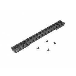 Планка оснащена верхними элементами стандарта Weaver/Picatinny, что делает ее универсальной для установки различных типов прицелов. Такой интерфейс позволяет легко и быстро монтировать оптические, коллиматорные и другие виды прицелов, обеспечивая их стабильную посадку.